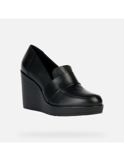 Composition : 100% cuir pour la tige, semelle intérieure en cuir (80%) et synthétique (20%). Semelle compensée offrant stabilité et élégance. Design classique modernisé, finition noire lisse.
