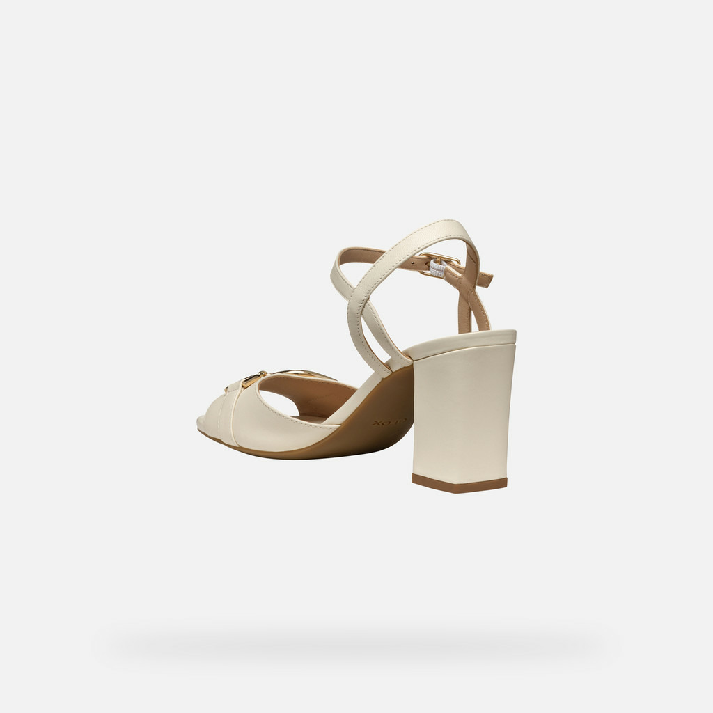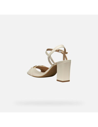 Fabriquées en cuir nappa souple, ces sandales présentent un talon haut confortable et une finition blanche lait délicate. Le détail métallique apporte une touche de modernité discrète, tandis que la composition 100% cuir assure durabilité et respirabilité.