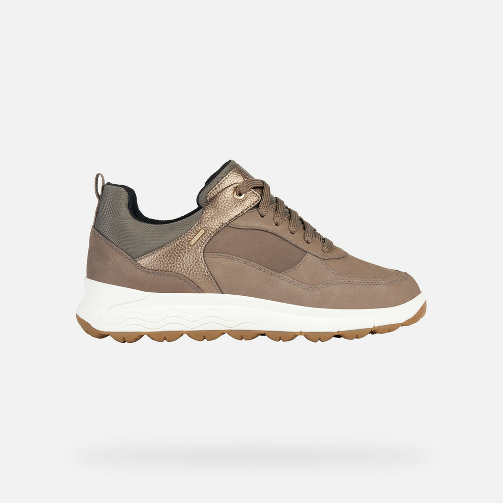 Ces sneakers pour femme s’inspirent du running moderne avec une silhouette dynamique et raffinée. Le nubuck imprimé associé à un cuir foulonné métallisé confère une texture riche et un effet sophistiqué, tandis que la teinte taupe foncé et plomb s’adapte à toutes vos tenues casual. Pensées pour les journées pluvieuses, elles offrent une imperméabilité optimale sans compromettre la respirabilité, pour un confort durable au quotidien.