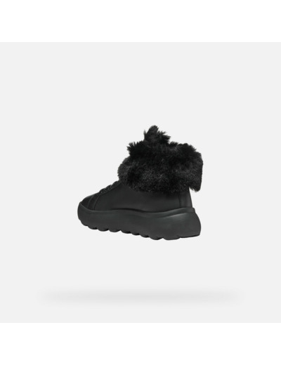 Ces sneakers semi-montantes se distinguent par une tige en cuir nappa souple associée à une matière effet fausse fourrure, offrant une allure raffinée et chaleureuse. Leur tonalité noire classique s’adapte facilement à toutes vos tenues de loisirs, tandis que leur design respirant et ultra-amorti garantit un confort durable, même lors de longues journées.