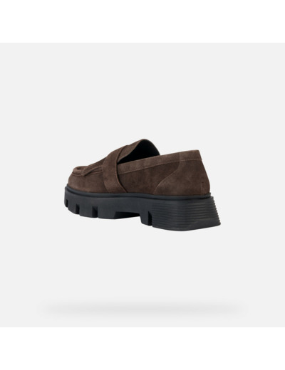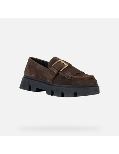 Conçus pour les femmes actives, ces mocassins marron foncé marient une tige en cuir velours inspirée du style universitaire à des détails sophistiqués comme les franges et la maxiboucle. La semelle extérieure chunky apporte une touche contemporaine tout en assurant une allure dynamique et tendance, parfaite pour sublimer vos looks quotidiens.
