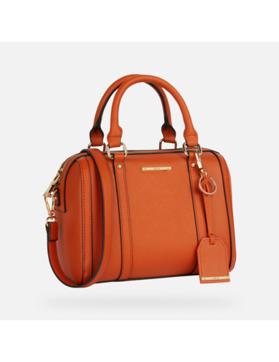 Dimensions : 24 cm de longueur, 15 cm de largeur, 22 cm de hauteur. Matière : 100% synthétique effet cuir saffiano. Fermeture éclair en métal, accessoires métalliques finition or. Bandoulière réglable et amovible. Deux poches intérieures, dont une avec fermeture éclair. Porte-clés amovible avec plaquette en cuir. Plaquette métallique Geox discrète.