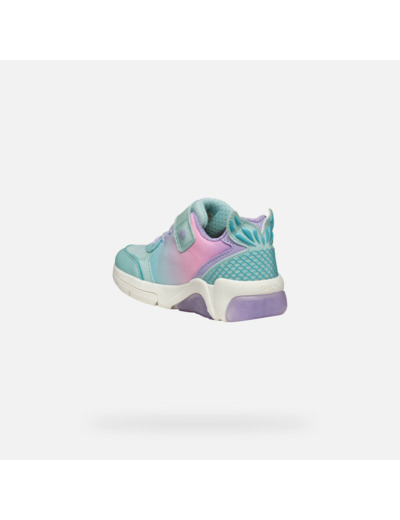 Ces sneakers basses pour fille se distinguent par leur design actif et coloré, mêlant vert d’eau et lilas dans un tissu imprimé rehaussé d’un cuir verni à paillettes. Intégrant des lumières dans la semelle extérieure, elles captivent le regard tout en accompagnant les mouvements de votre enfant avec confort et légèreté. Parfaites pour compléter les tenues de tous les jours, elles invitent à l’imagination aux côtés de la princesse Disney préférée.
