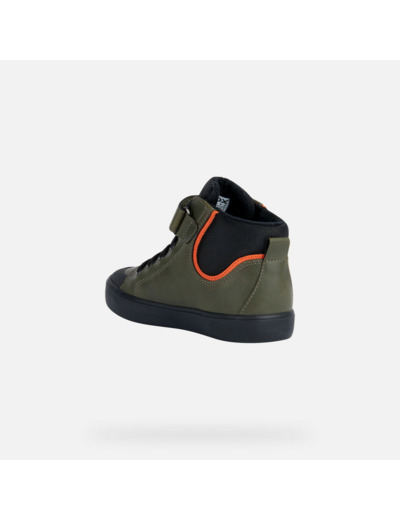 Alliez style et confort avec les sneakers semi-montantes J GISLI BOY, conçues pour accompagner chaque pas de votre garçon avec légèreté et modernité. Leur design épuré en vert foncé et noir s’intègre parfaitement aux tenues décontractées du quotidien.