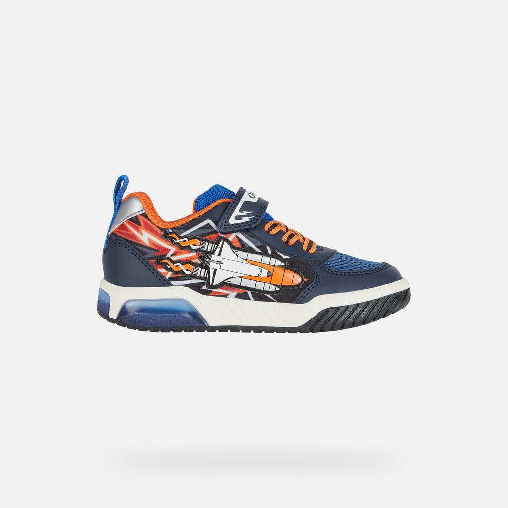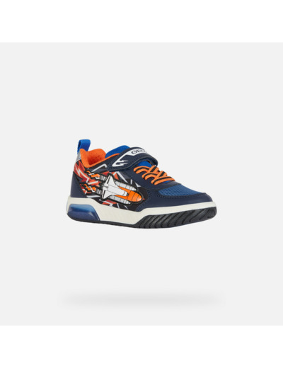 Conçues pour les jeunes actifs, ces chaussures basses mêlent tissu respirant et matière à effet cuir imprimé pour un look sportif affirmé. Le bleu marine profond associé à des touches orange vibrantes et des graphismes mordants sur la tige donnent à ce modèle une personnalité unique, parfaite pour accompagner toutes les escapades de votre enfant. La semelle extérieure transparente intègre des lumières qui s’allument à chaque mouvement, stimulant le plaisir de marcher et jouer.