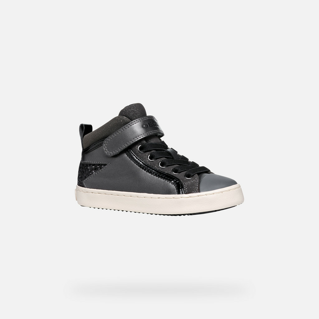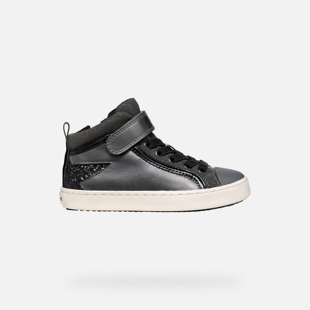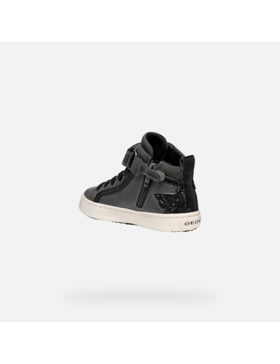 Conçues en gris foncé avec des touches noires, ces sneakers semi-montantes se distinguent par leurs applications brillantes au talon qui captent la lumière avec subtilité. Leur matière à effet cuir nacré combinée à un mesh scintillant offre un look tendance et unique, idéal pour celles qui veulent allier originalité et praticité au quotidien.