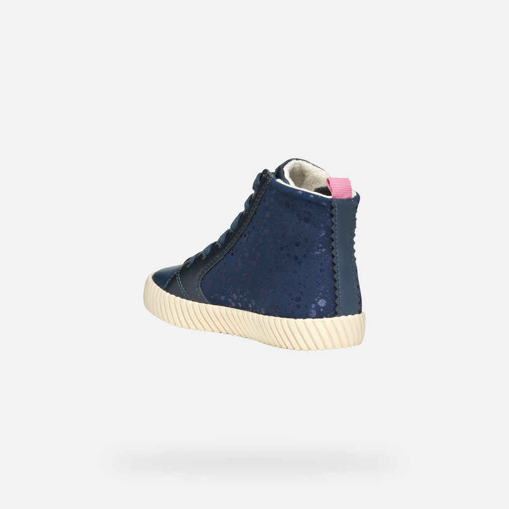 Ces sneakers semi-montantes en bleu marine se distinguent par leur tige ornée de micropois subtils, mêlant matières à effet cuir velours et cuir nacré pour une touche féminine et raffinée. La fermeture éclair latérale facilite l’enfilage, tandis que la conception respirante assure un bien-être optimal tout au long de la journée.