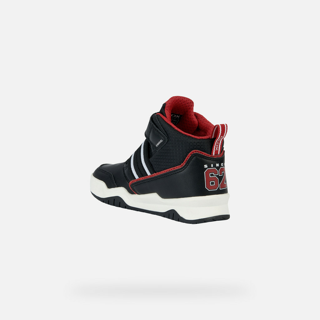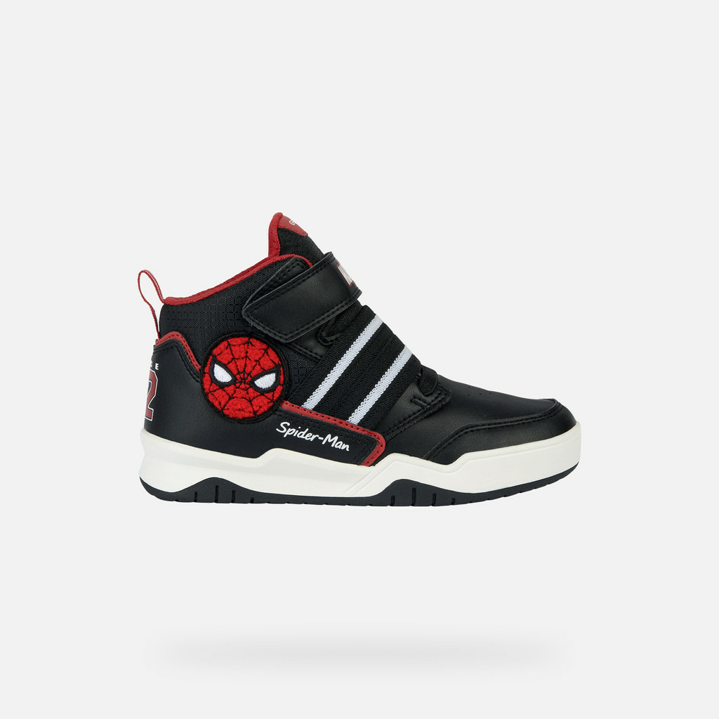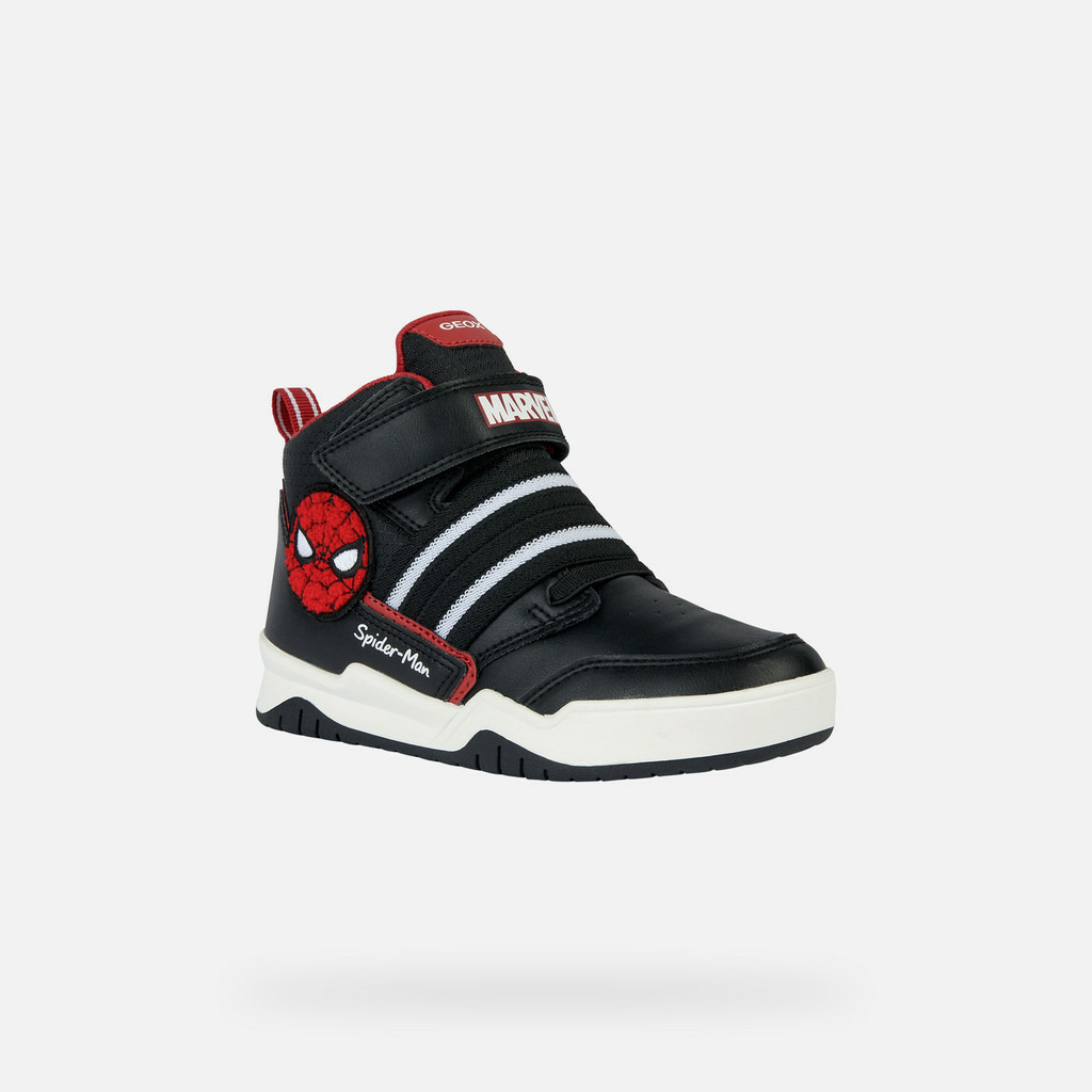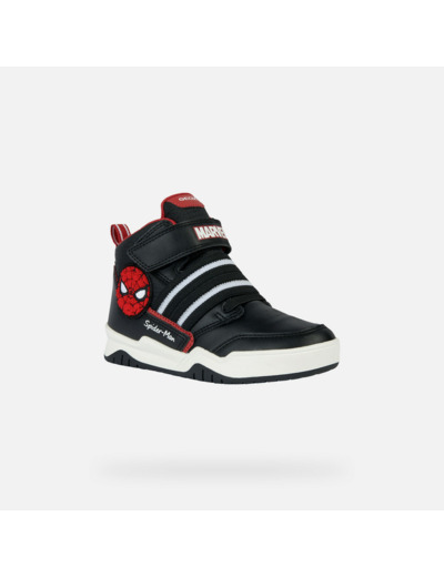 Inspirées des baskets semi-montantes, ces chaussures noires aux touches rouges affichent un patch et des imprimés Spider-Man qui captivent le regard. Leur design mêle matière effet cuir et tissu, offrant une silhouette moderne et décontractée, idéale pour accompagner toutes les tenues sportives du quotidien. La collaboration Geox x Marvel garantit un produit à la fois tendance et authentique.