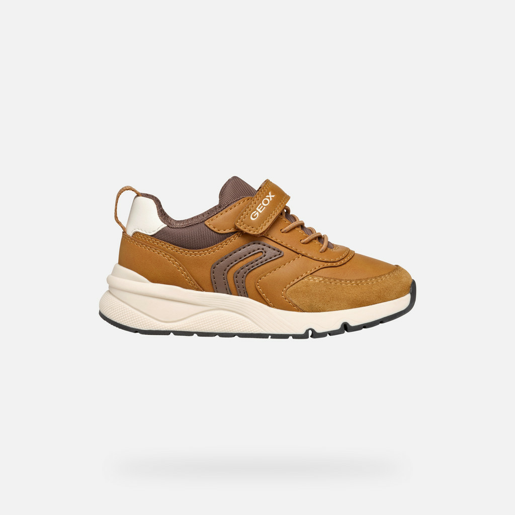 Ces sneakers basses se distinguent par leur combinaison audacieuse de jaune foncé et brun foncé, qui dynamise le look quotidien. Fabriquées en matière à effet cuir ciré et nylon, elles offrent un équilibre parfait entre robustesse et légèreté. Idéales pour l’école comme pour les sorties du week-end, elles s’adaptent à toutes les occasions avec une élégance décontractée.