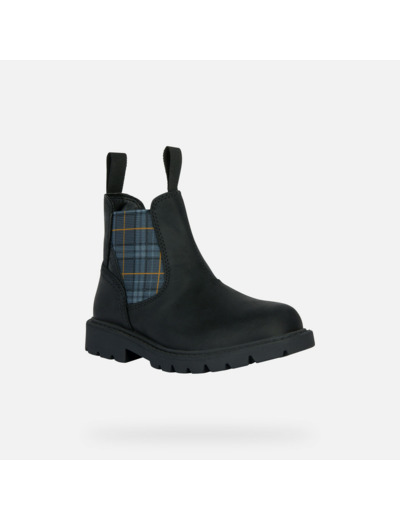 Les bottines J SHAYLAX incarnent l’élégance urbaine revisitée pour les jeunes garçons. Leur design Chelsea boots noir, rehaussé de touches jaune foncé et d’un élastique tartan, allie style et praticité au quotidien.
