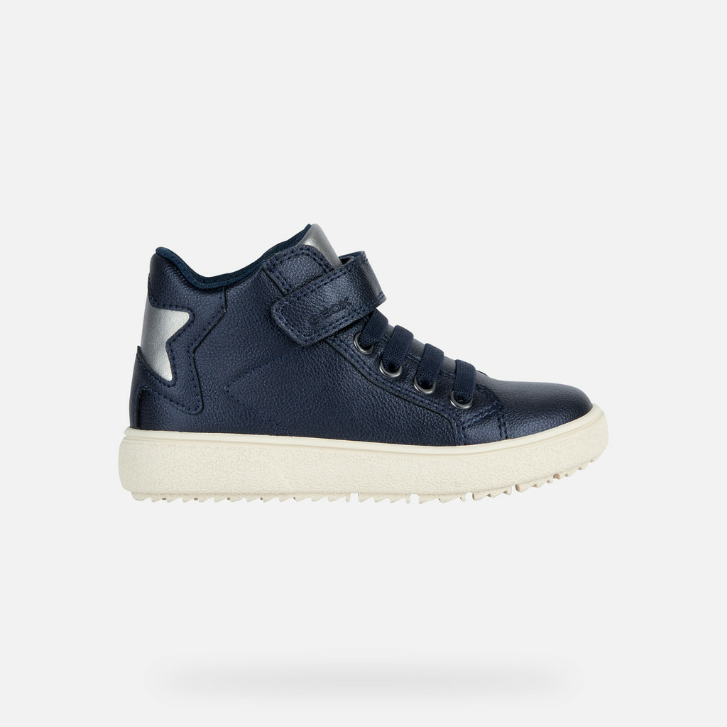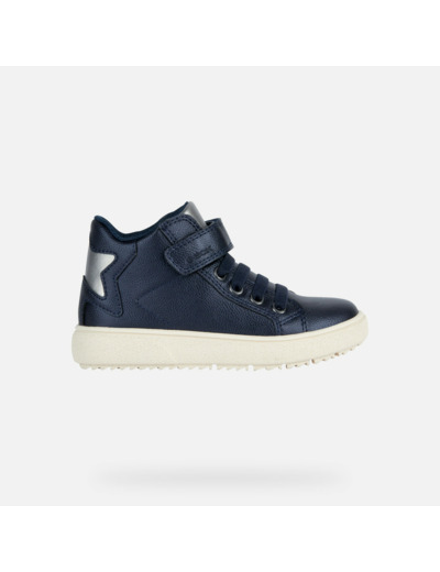 Ces sneakers semi-montantes bleu marine se distinguent par leur design moderne et leur étoile lumineuse sur le talon, qui apporte une note originale et dynamique. La combinaison de matières à effet cuir et cuir nacré confère à ces chaussures une allure sophistiquée tout en restant souples et respirantes, idéales pour accompagner chaque mouvement de votre enfant avec légèreté.
