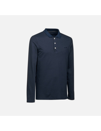 100 % coton biologique en piqué, col en maille, boutons en nacre, manches longues, coloris bleu nuit. Disponible dans les tailles standards homme.