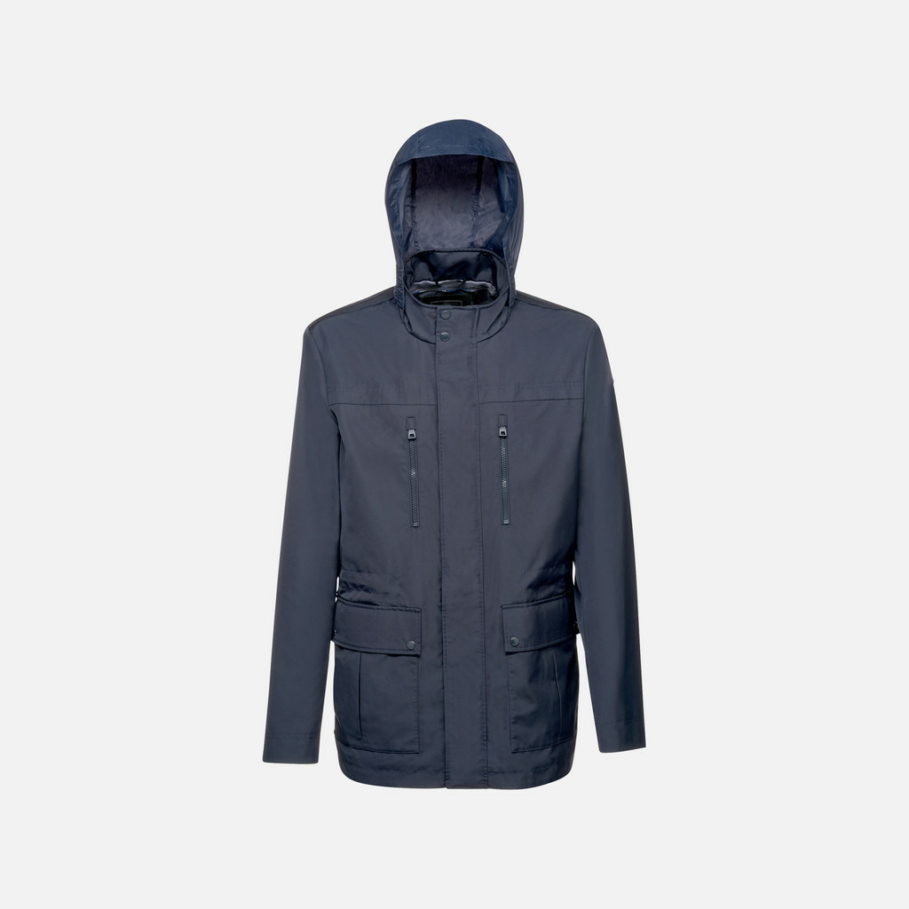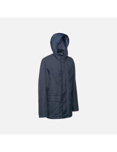 100% polyester, le tissu Oxford garantit robustesse et résistance. Le blouson est mi-long, avec une capuche intégrée dans le col pour plus de discrétion et de praticité. Sa couleur bleu nuit profonde s’adapte à toutes les palettes de votre garde-robe.