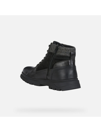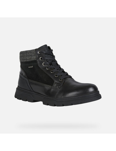 Ces bottines montantes pour homme marient cuir pull-up noir et inserts en cuir velours ton sur ton, offrant un jeu de textures sophistiqué et moderne. Pensées pour les températures basses, elles intègrent la technologie Amphibiox™ qui garantit une imperméabilité totale, tandis que la semelle extérieure en caoutchouc assure adhérence et durabilité. La doublure et la semelle intérieure amovible, toutes deux en matière chaude, enveloppent vos pieds de confort, pour une sensation agréable tout au long de la journée.