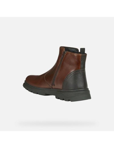 Alliez robustesse et élégance avec les bottines U Clintford B ABX de Geox, conçues pour affronter les froids les plus intenses sans compromis sur le style. Leur cuir pull-up brun foncé et les inserts en matière effet cuir foulonné offrent un contraste raffiné qui sublime chaque tenue.