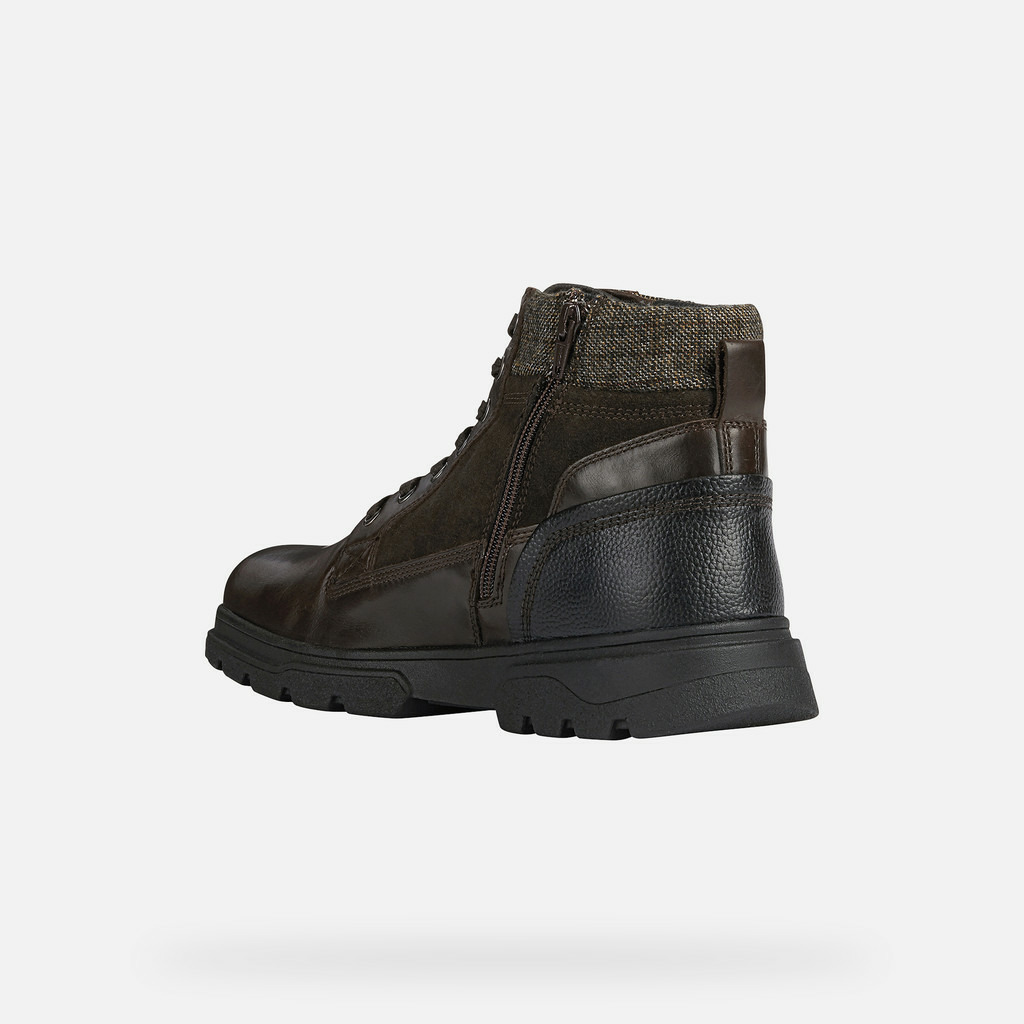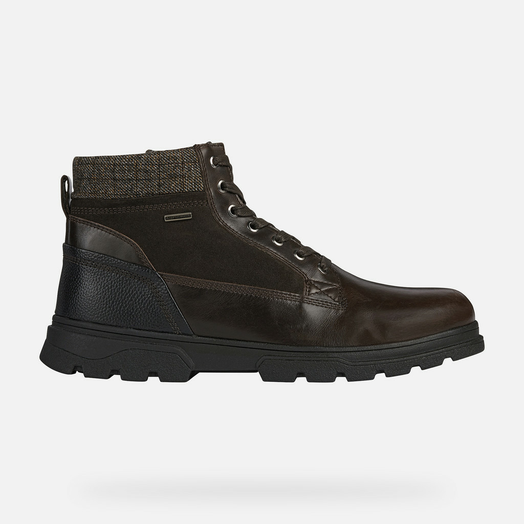 Ces bottines montantes associent un cuir pull-up raffiné à des inserts en cuir velours brun foncé, offrant un contraste de textures sophistiqué et une allure masculine affirmée. Leur design robuste s’adapte parfaitement aux exigences de la saison froide, tout en restant léger et respirant grâce à la technologie exclusive Geox. La semelle extérieure en caoutchouc garantit une adhérence optimale sur sols humides ou glissants, tandis que la doublure chaude enveloppe le pied pour un confort durable.
