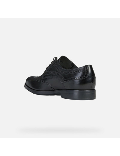 Alliez élégance classique et confort moderne avec les U Hilstone Wide de Geox. Ces chaussures brogue en cuir noir lisse incarnent le raffinement sans compromis sur la légèreté et la respirabilité.