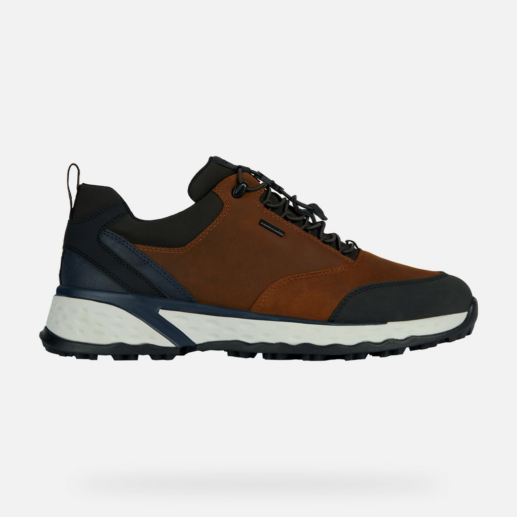 Alliez style urbain et performance outdoor avec les sneakers U Sterrato B ABX. Leur teinte ocre unique et leur design semi-montant imposent une allure technique et moderne.