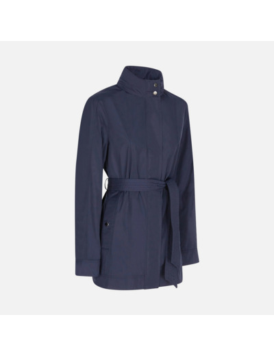 Profitez d’une protection optimale contre le vent et la pluie légère grâce à son tissu technique, tout en bénéficiant d’un confort thermique assuré par sa doublure. La capuche amovible vous permet d’ajuster votre look selon les conditions, tandis que la ceinture à nouer affine votre silhouette pour une allure féminine et moderne.