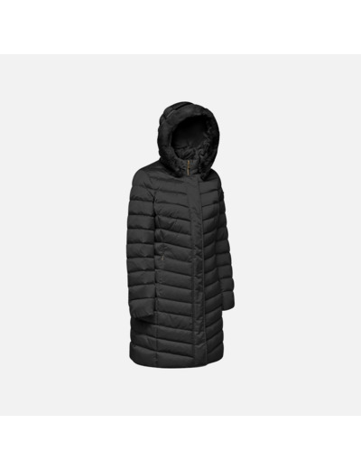 Pensée pour envelopper et valoriser la silhouette, cette veste matelassée se distingue par son rembourrage en plumes régénérées XDOWN, garantissant une isolation optimale tout en respectant l’environnement. La capuche amovible, bordée de fausse fourrure, protège efficacement du vent et du froid, pour un confort durable et une allure soignée.
