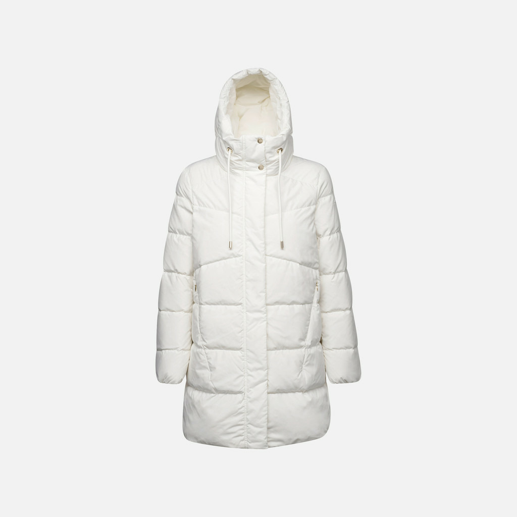 100% polyester recyclé, rembourrage 50% duvet de canard et 50% plumes régénérées XDOWN. Capuche réglable par cordon. Coupe longue et matelassée pour une isolation optimale. Coloris total white.