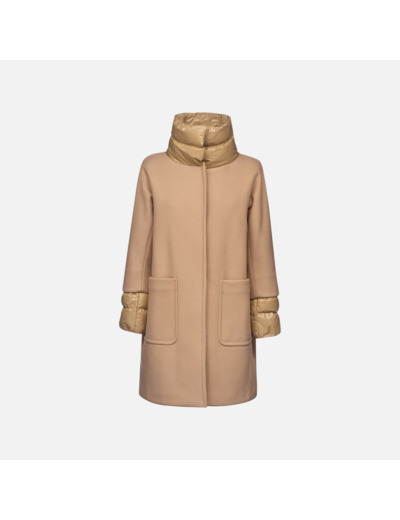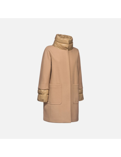 Composition : 70% polyester, 30% laine, 100% matière recyclée. Intérieur matelassé et rembourré en ouate recyclée EcologicWARM. Détails en nylon brillant sur le col et en bas des manches. Fermeture invisible. Poches pratiques intégrées.