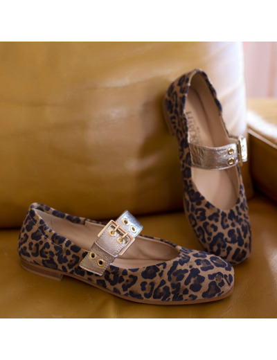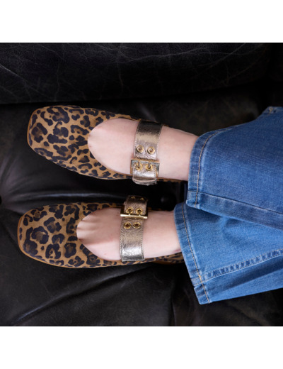 Affirmez votre style avec la ballerine Matild, où l’audace du léopard rencontre l’élégance d’une bride dorée. Un modèle pensé pour sublimer chaque pas avec subtilité et caractère.