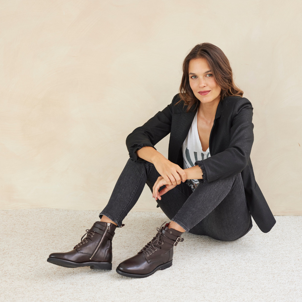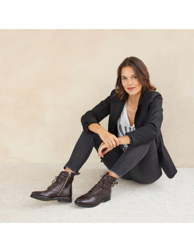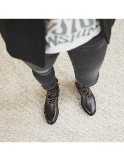 Conçues pour durer, ces boots à lacets se distinguent par leur zip intérieur qui facilite l’enfilage sans compromettre le maintien. Le cuir de qualité supérieure épouse la forme du pied, offrant un confort naturel et un look intemporel, parfait pour accompagner vos tenues casual ou plus habillées.