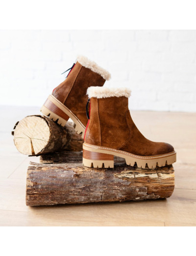 Conçues pour la femme moderne, ces boots mêlent un cuir velours raffiné à une semelle gomme effet bois, alliant confort et caractère. Le talon de 5,5 cm élance la silhouette sans sacrifier la stabilité, parfait pour une allure affirmée au quotidien ou en soirée.