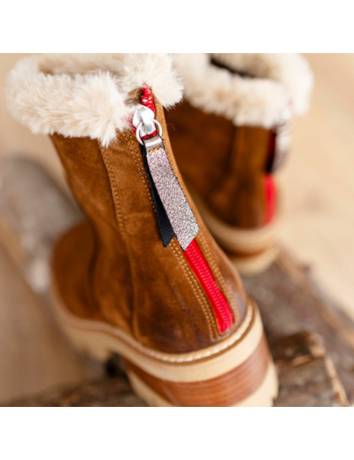 Fabriquées en cuir velours Cuoio, ces boots disposent d’un zip rouge arrière, d’une semelle gomme effet bois et d’un talon de 5,5 cm pour un équilibre parfait entre style et confort.