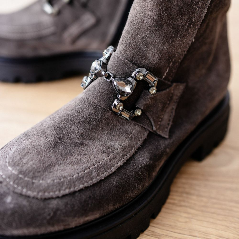 Offrez à votre allure une touche d’élégance audacieuse avec les boots Emy grises signées Hardrige. Un bijou discret et une semelle crantée pour affirmer votre style en toute saison.