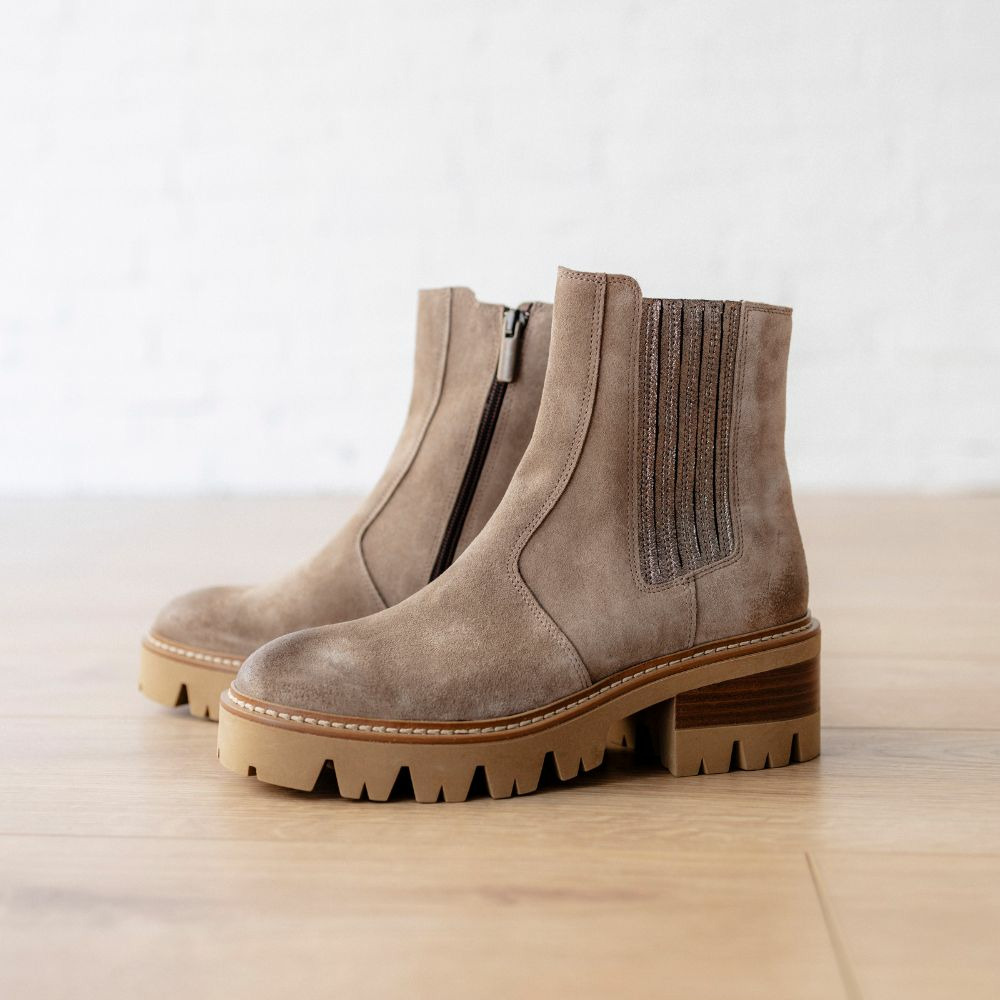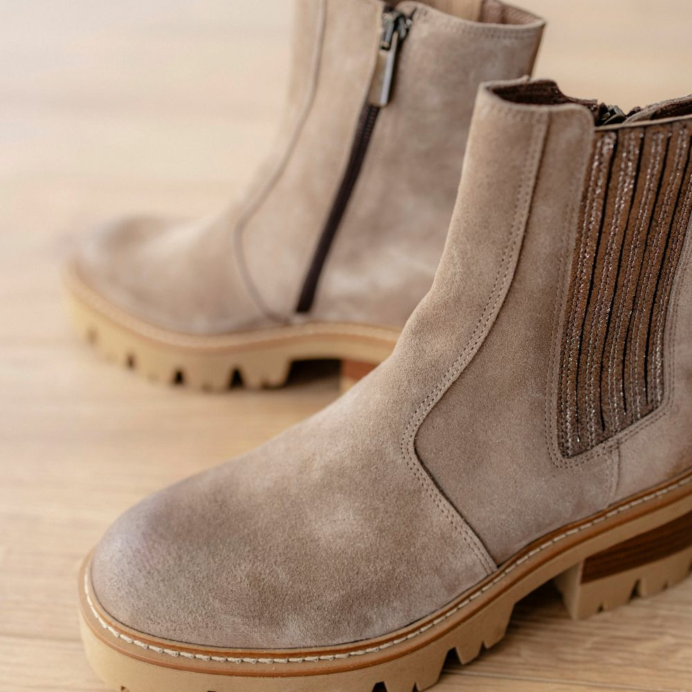 Affirmez votre style avec ces boots en cuir suédé taupe, alliant élégance et confort au quotidien. Une silhouette moderne pensée pour sublimer toutes vos tenues.