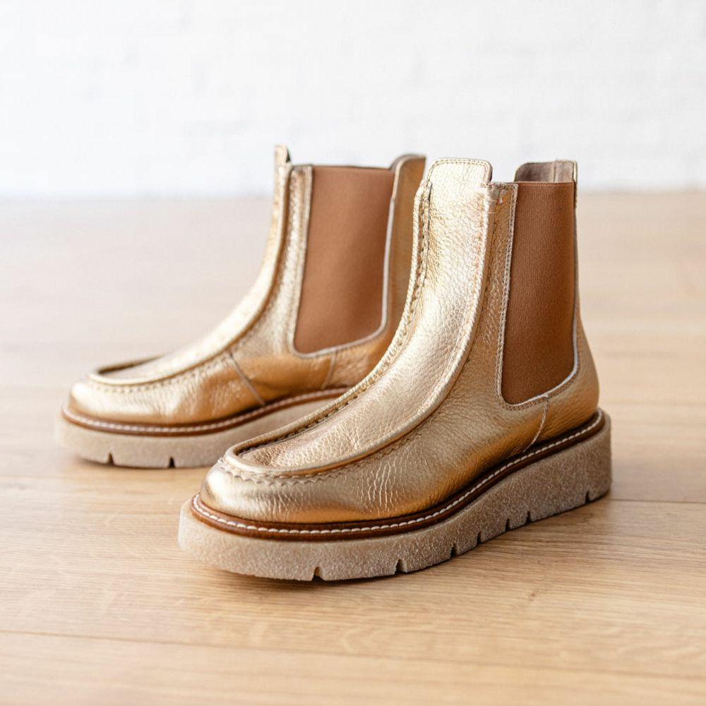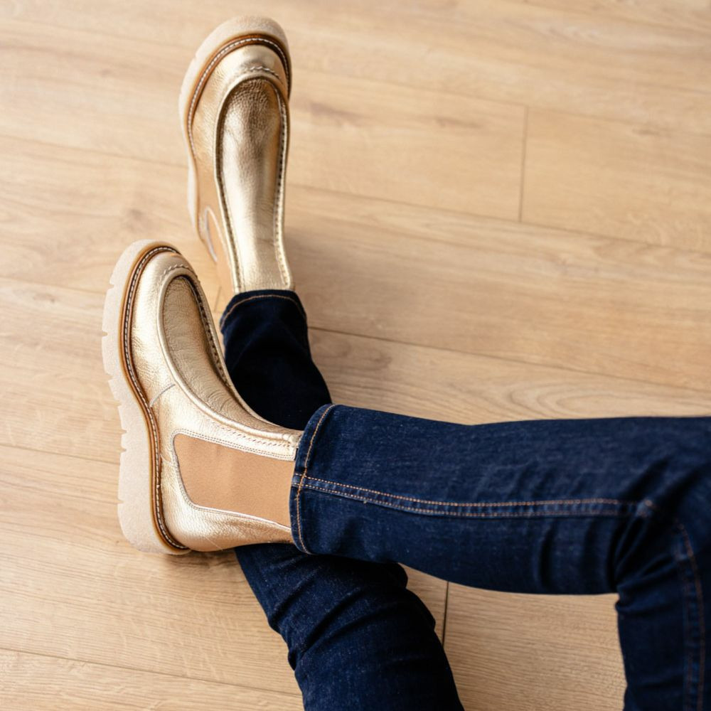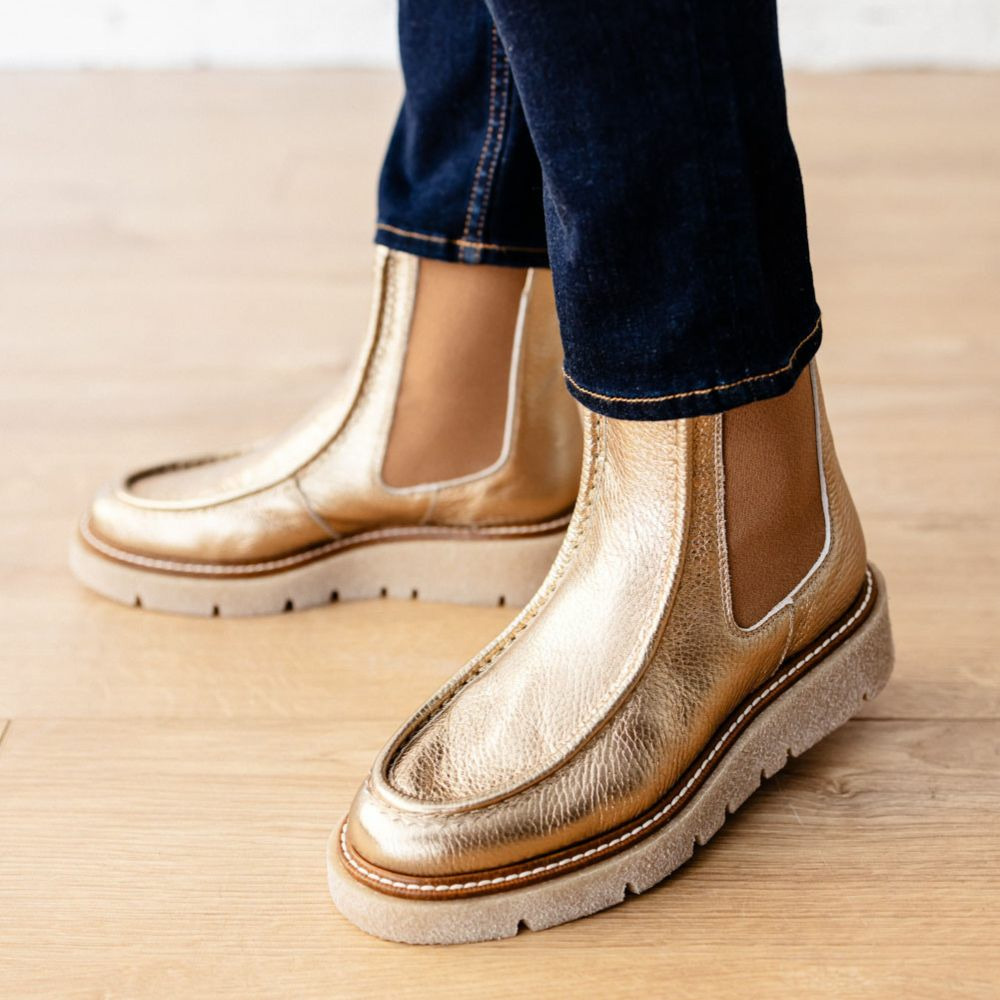 Affirmez votre style avec ces boots en cuir gold qui allient élégance et confort au quotidien. Une touche de lumière subtile pour sublimer toutes vos tenues.