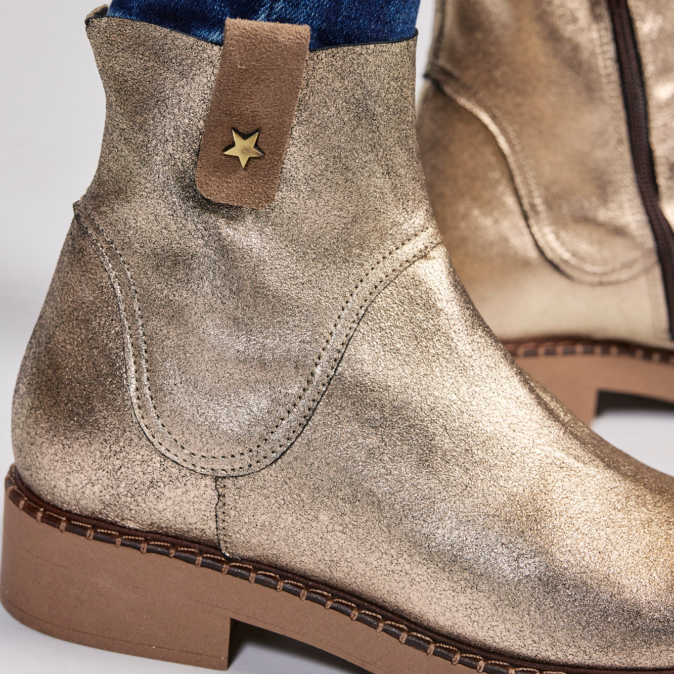 Affirmez votre style avec les boots Suza, une alliance parfaite entre élégance et audace. Leur cuir fantaisie bronze capte la lumière pour sublimer chaque pas.