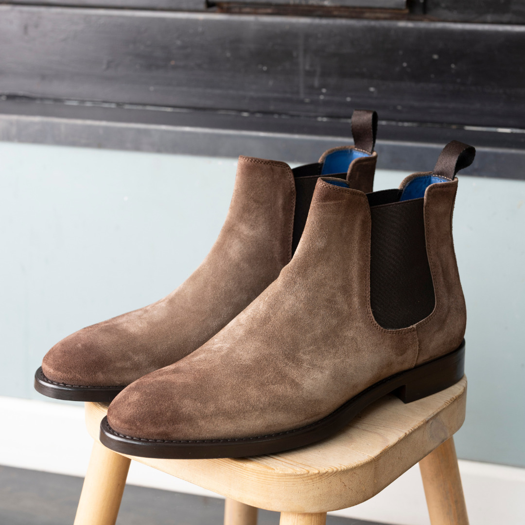 Affirmez votre style avec cette Chelsea boot en cuir suédé taupe, alliant élégance et robustesse. Une chaussure pensée pour l’homme moderne qui ne transige pas sur la qualité.