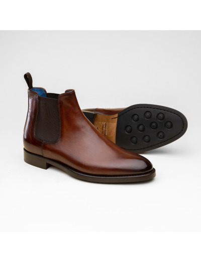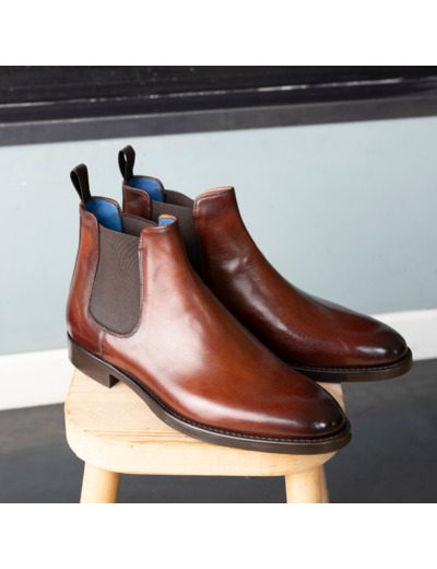 Question ? Quelle est la matière principale de la chaussure ? Réponse. Le cuir gold pleine fleur compose la tige de cette Chelsea boot, assurant qualité et élégance.