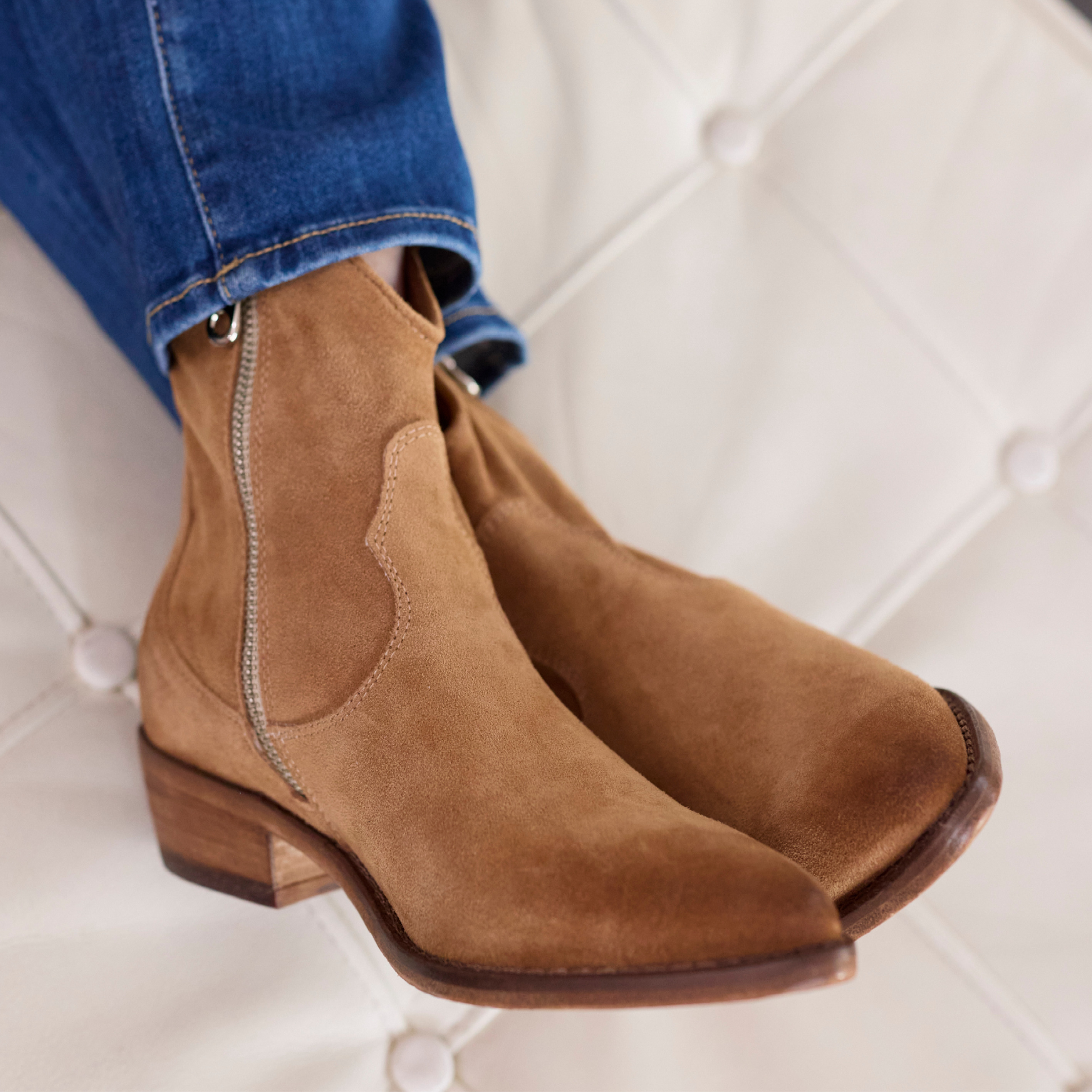 Affirmez votre style avec la bottine Santa, une alliance parfaite entre élégance et confort pour l’été. Sa teinte cuoio en cuir suede sublime chaque tenue avec une touche naturelle et raffinée.