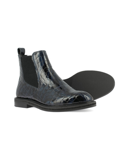 Affirmez votre style avec ces boots en cuir verni bleu effet croco, alliant audace et confort. Une touche de caractère pour sublimer toutes vos tenues d’hiver.