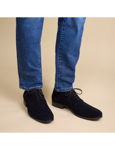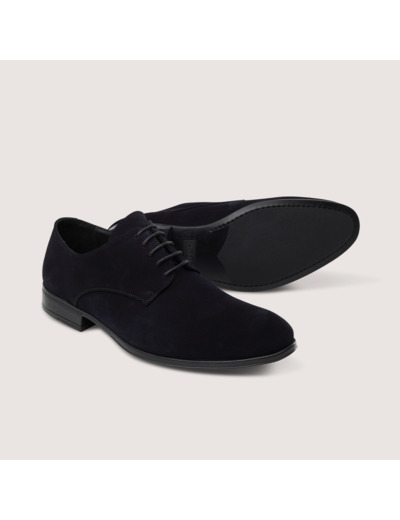 Derby pour Homme en cuir suède Navy. Semelle gomme. Montage cousu Blake.