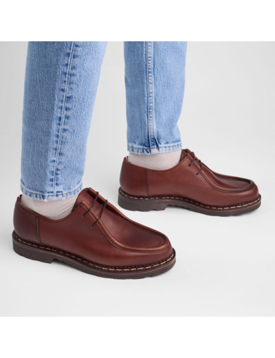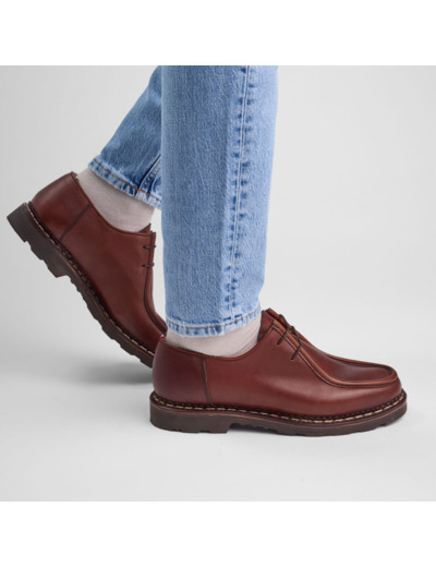 Derby pour homme en cuir marron et semelle gomme. Montage cousu Norvégien.