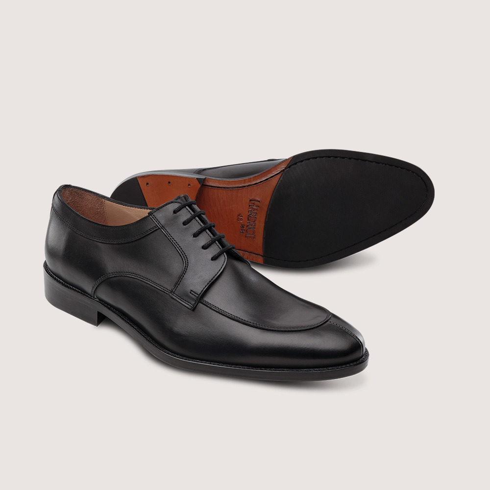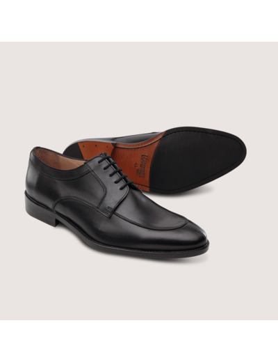 Derby pour Homme en cuir Noir. Semelle cuir. Montage cousu Blake.