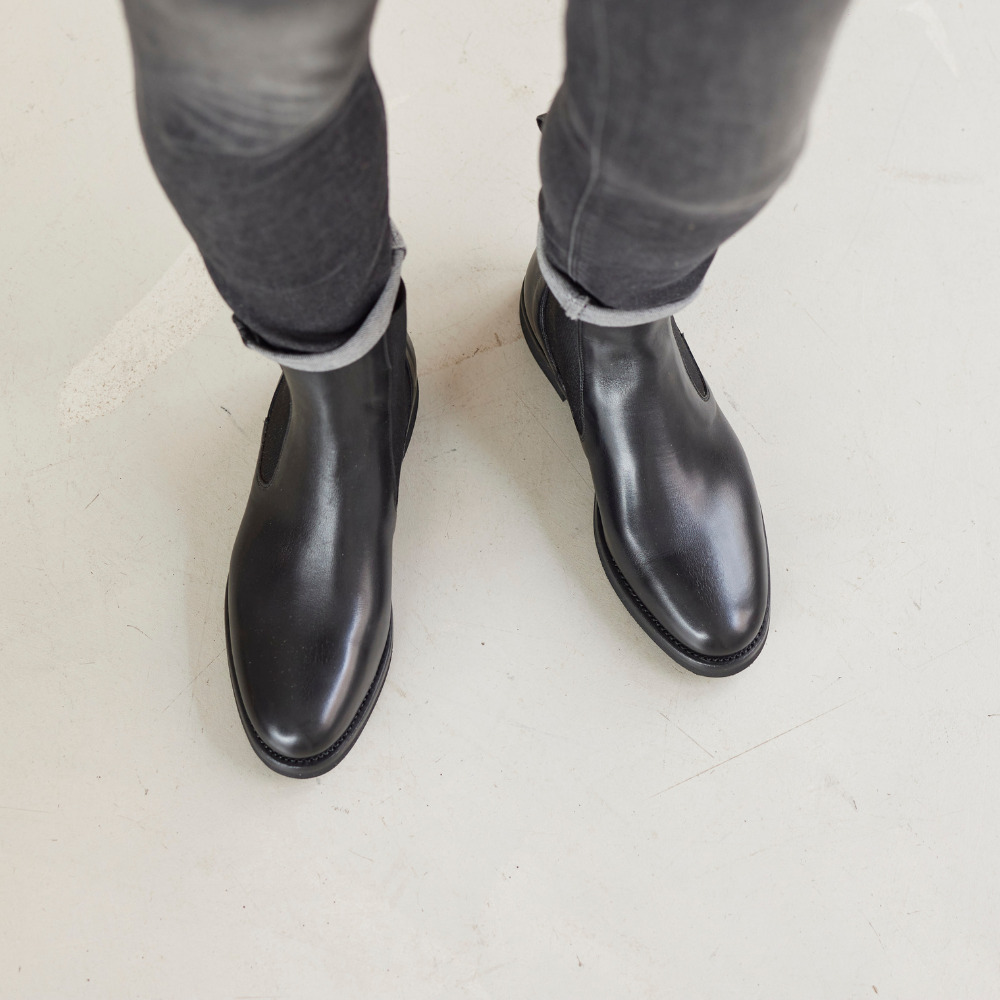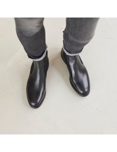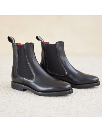 Boots pour femme en cuir  Rusticalf noir, cousu Goodyear, semelle X-light