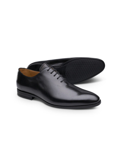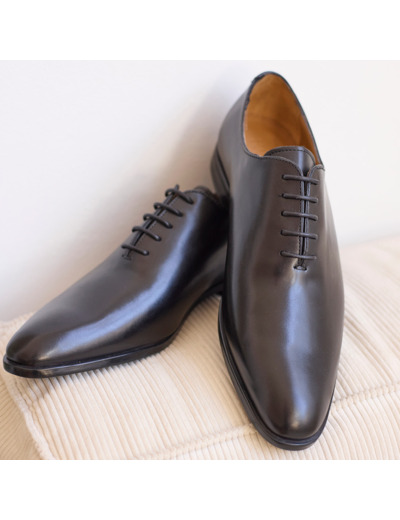 Richelieu Enzo Homme, Cuir lisse Noir, Cousu Blake, Semelle gomme