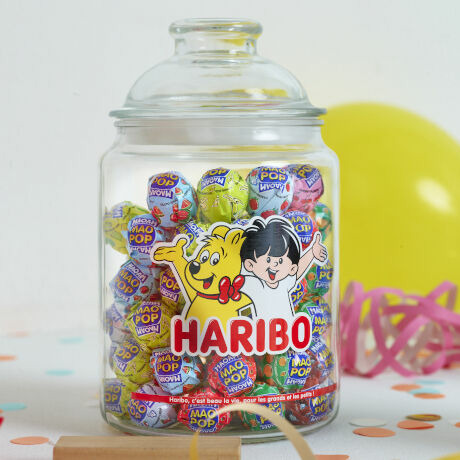 Conçue en verre transparent, cette bonbonnière de 2 litres met en valeur vos douceurs tout en apportant une touche graphique grâce à ses célèbres mascottes. Son design épuré s’adapte à toutes les ambiances, qu’il s’agisse d’une fête, d’un mariage ou d’un moment convivial entre amis.