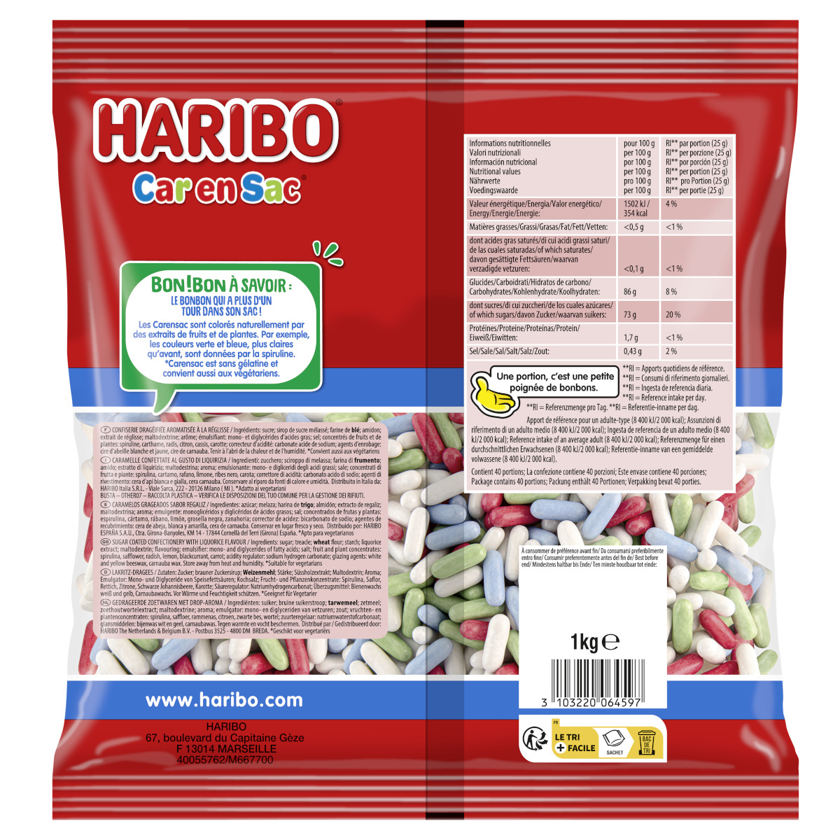 Réponse. Le sachet contient 1 kg de bonbons Carensac en vrac.