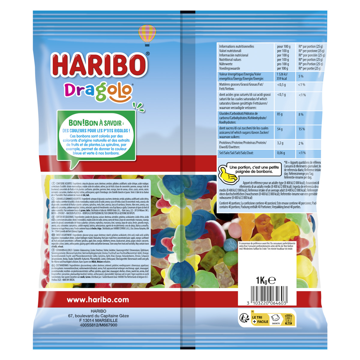 Un assortiment gourmand qui réveille vos envies sucrées en grand format. Le sachet Dragolo de 1 kg rassemble vos bonbons préférés pour un plaisir sans fin.