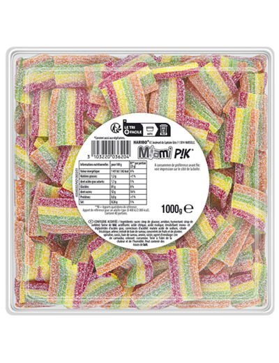 Succombez à l’explosion de saveurs et de couleurs avec les bonbons Miami Pik HARIBO, un plaisir acidulé unique en forme d’arc-en-ciel. Chaque bouchée est une invitation à la gourmandise multicolore qui pétille en bouche.