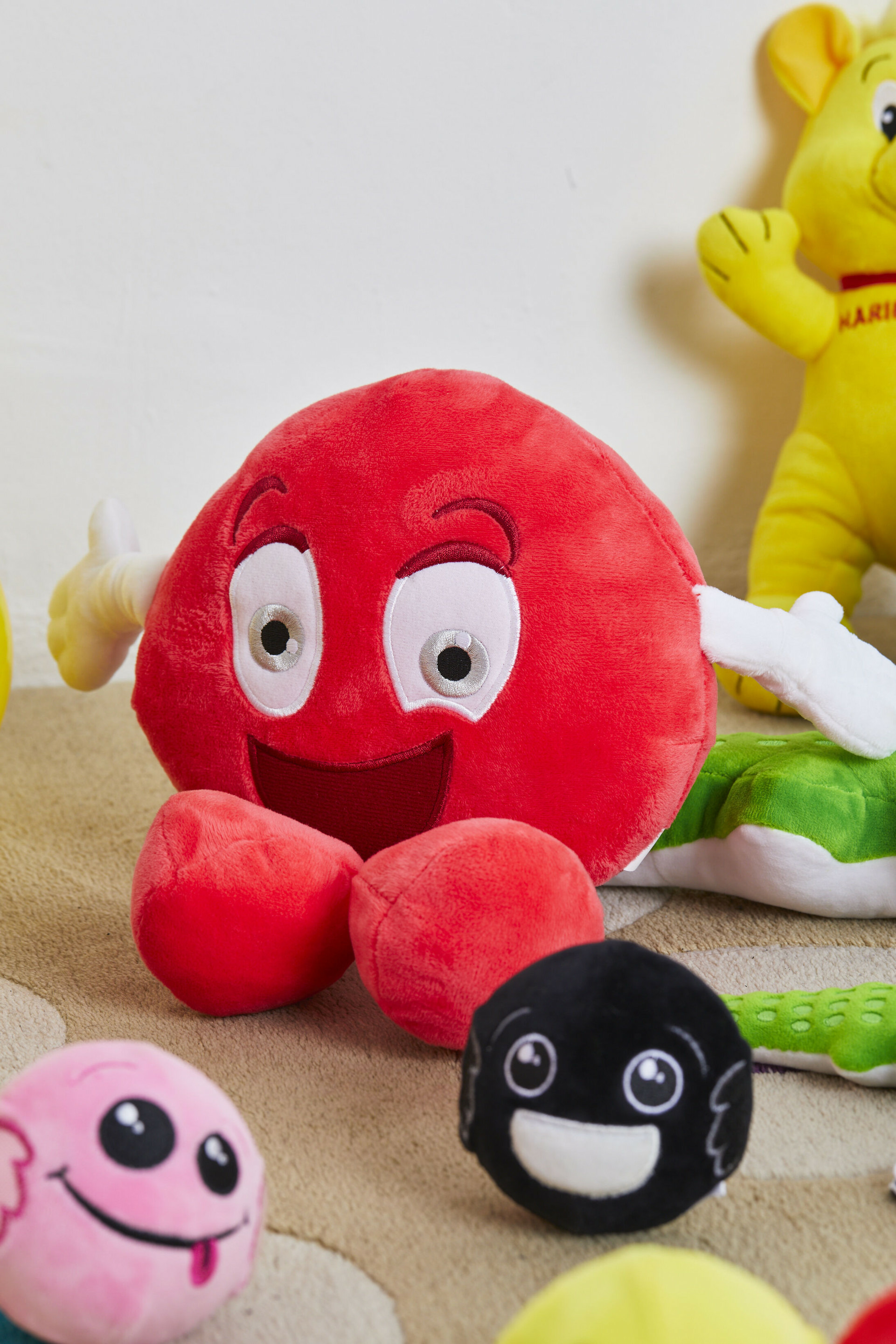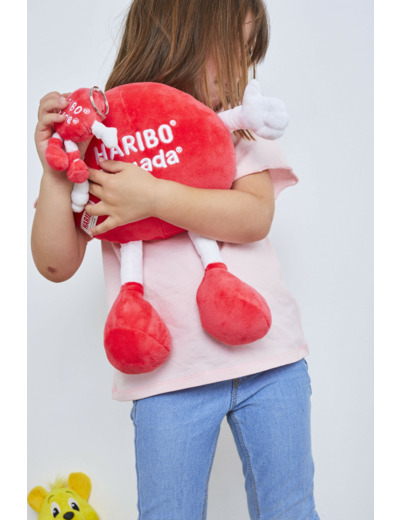 Cette peluche allie douceur et robustesse grâce à sa matière 100% polyester, idéale pour les petits mains. Sa teinte rose Tagada rappelle les célèbres bonbons HARIBO, apportant une touche de gourmandise visuelle qui séduira les enfants. Facile à manipuler, elle devient rapidement un doudou préféré pour les moments de jeu comme de repos.