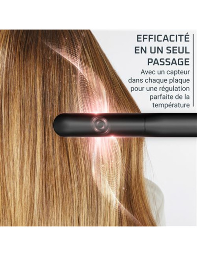 Réponse. Le lissage est efficace en un seul passage et offre une tenue longue durée grâce à la régulation précise de la température et à la technologie ionique.