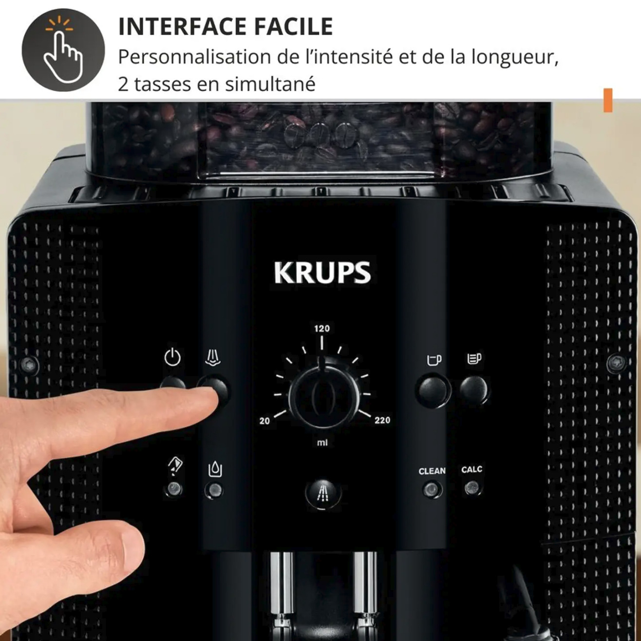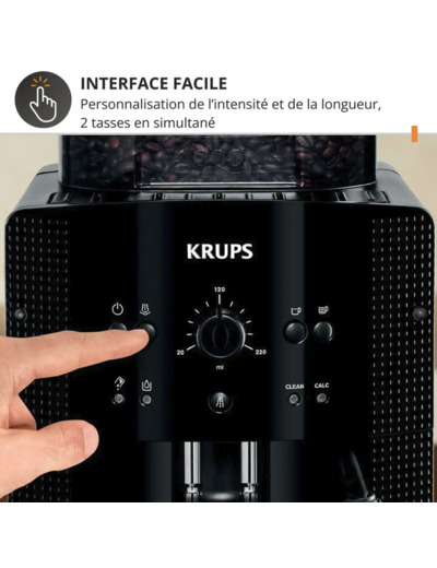 Avec KRUPS Essential, bénéficiez d’une expérience café personnalisée et rapide : réglages faciles, broyage précis, et extraction optimale pour un goût authentique à chaque préparation. Son format compact facilite son installation, et son panneau de commande clair vous guide pour un usage quotidien sans prise de tête.